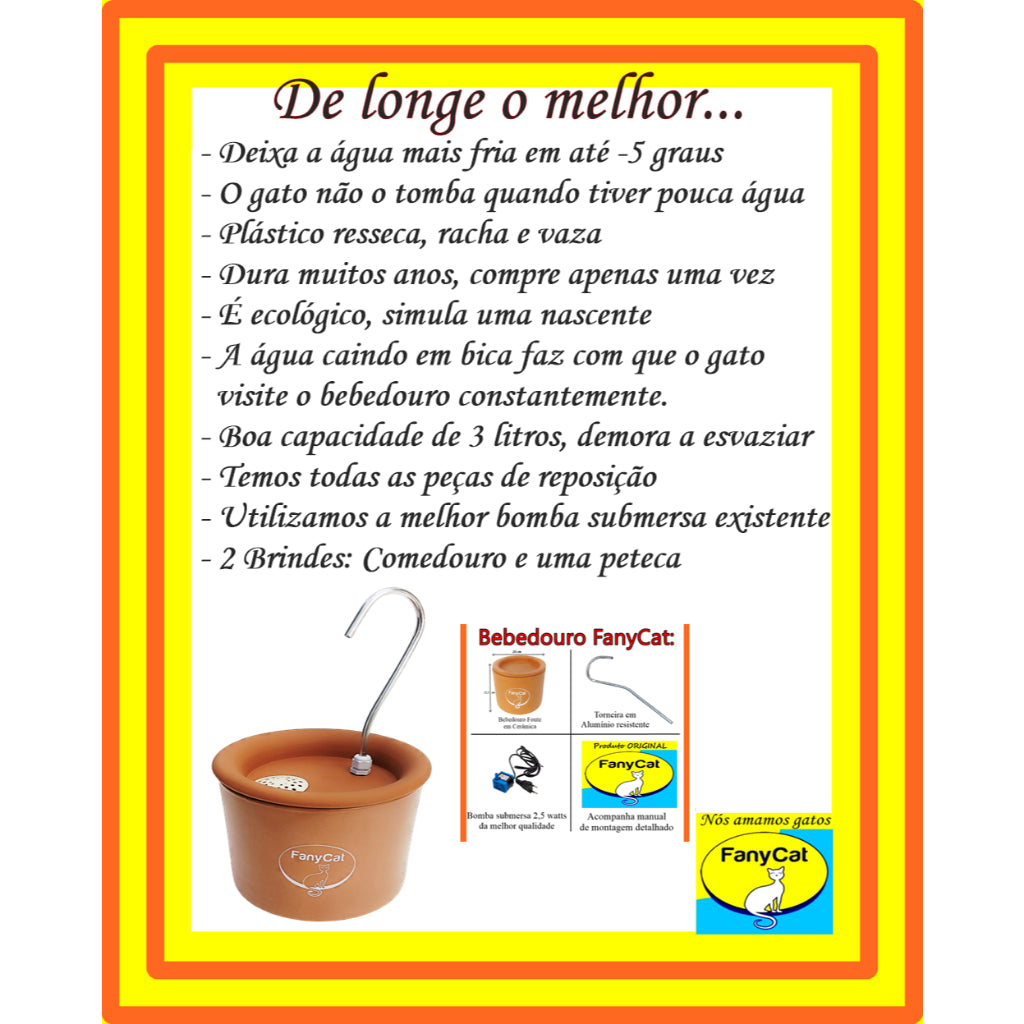 Fabricado em cerâmica de alta qualidade, é resistente, higiênico e fácil de limpar, além de ajudar a manter a temperatura da água por mais tempo. Seu design funcional e elegante combina com qualquer ambiente, proporcionando saúde e conforto para o gato.